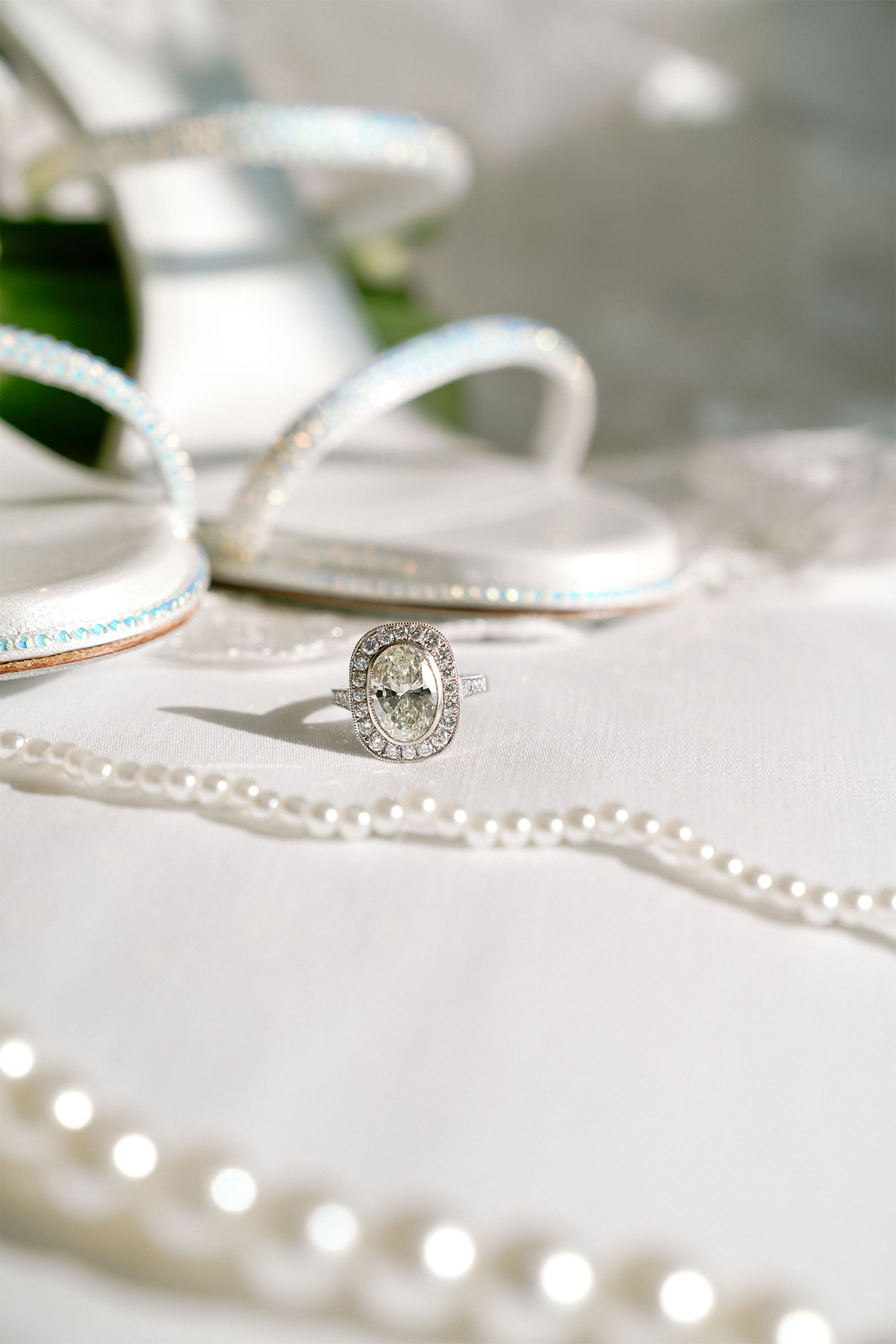 Bathed in a dance of shadow and light, the ring stands as herald of an ancient vow, its facets glowing like a moonlit halo, each spark guarding an eternal pledge…